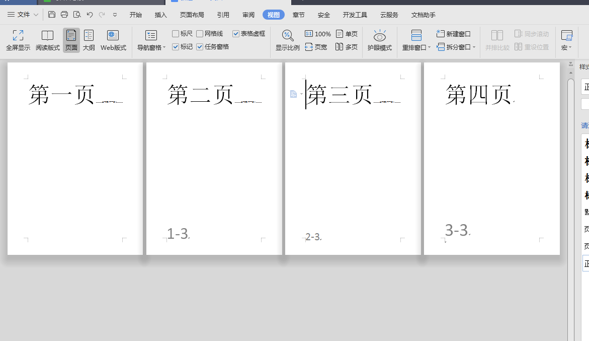 在Word中,默认为一节,每节的页码是连续的,若想在一个Word文档中,前一页不设页码,第二页、第三页码设置为罗马数字,第四页设置为阿拉伯数字,必须插入分节符,使第二页、第三页成为单独一节,这样就可以单独设置页码。