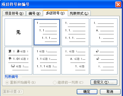 word项目符号和编号中的多级编号设置 比如:1.1 1.2 1.3以此内推 还有:1.1 1.1.1 1.1.1.1 怎么设置