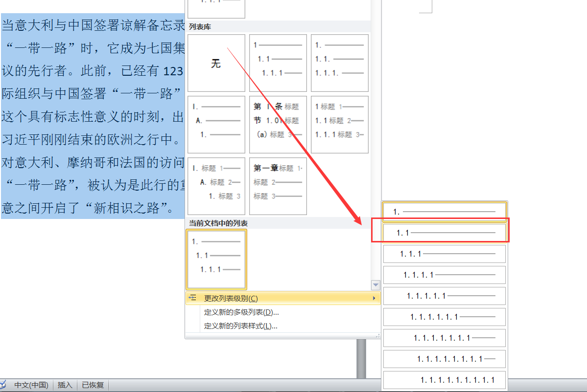 在word中如何设置多级编号例如:1.1;1.1.1;1.1.2