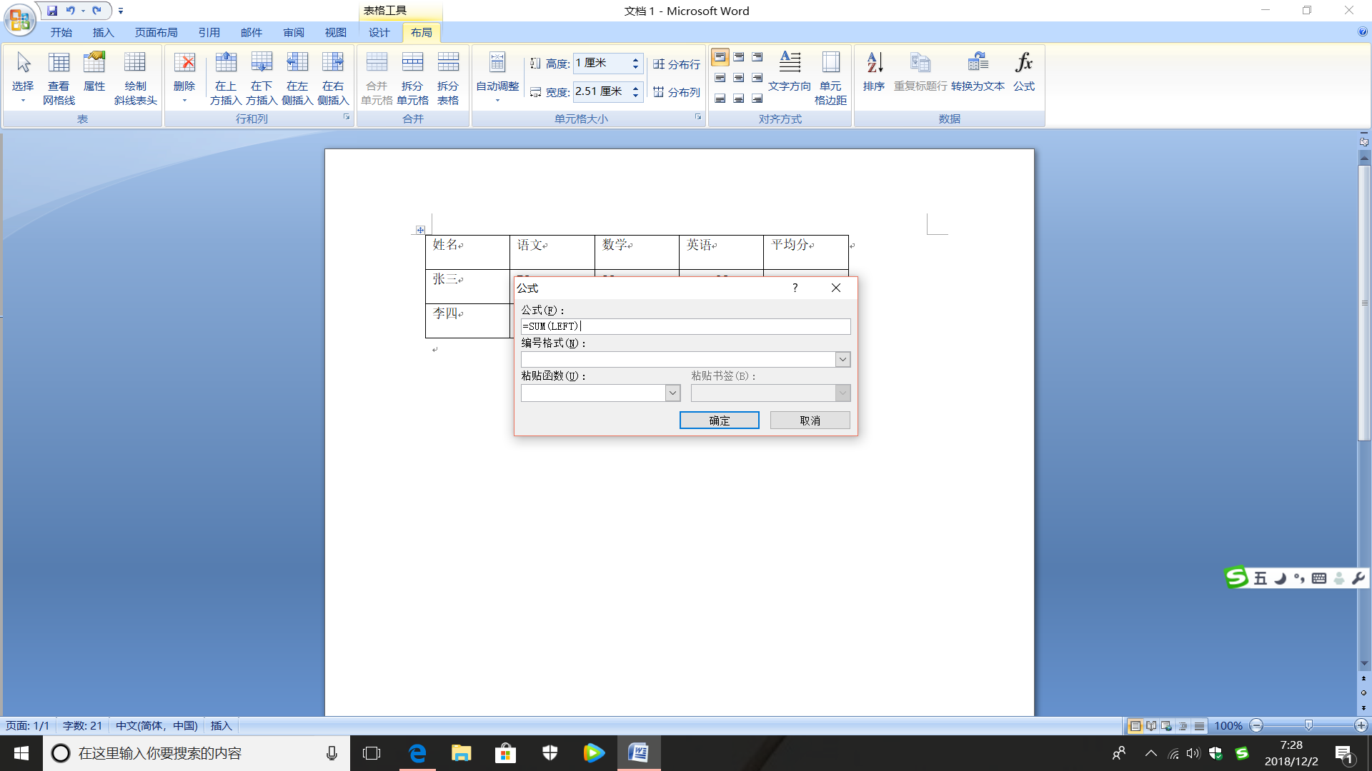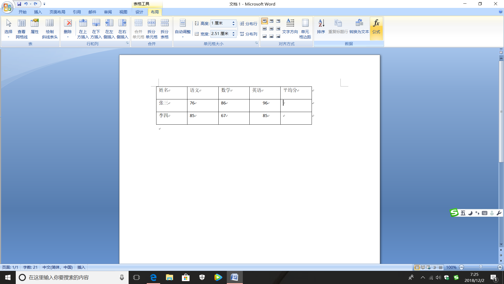 word 表格公式怎么计算平均值