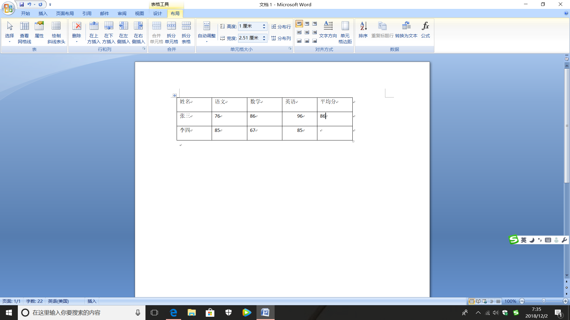 word里面的平均值怎么算?