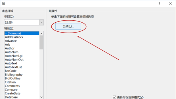 5.点击弹窗右方的“公式”。