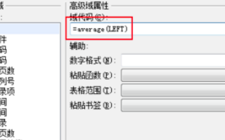 3、在域代码中写入=average(left),平均值是average。