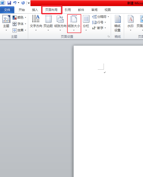 2、在打开的word文档页面的左上角中,选择“页面布局”下的纸张大小,如图所示。
