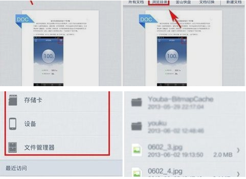 第三步,打开wps软件,进一步打开sd卡中的word文档即可。