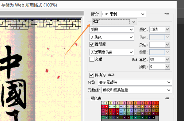 3、接着在弹出的格式里面将图片存储为GIF格式。