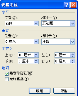 4、弹出表格定位对话框,将“随文字移动”选项打勾即可,如图所示。