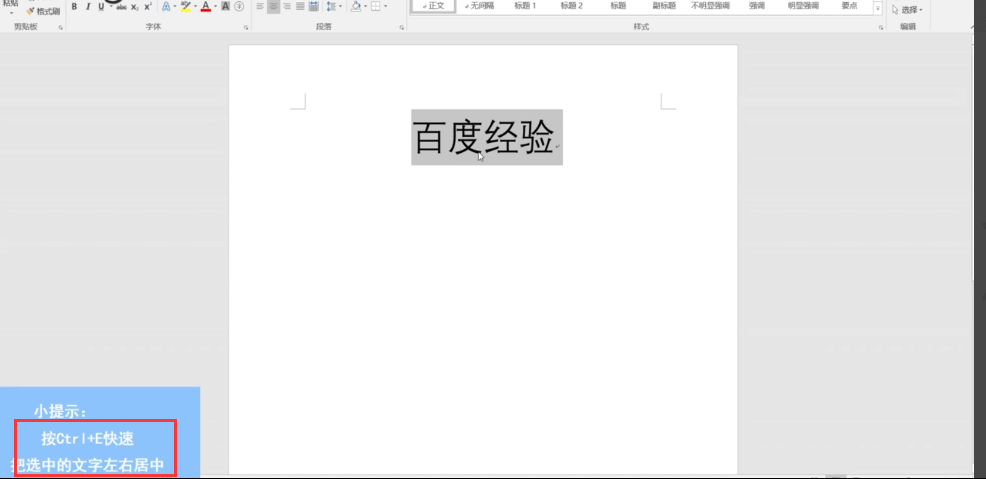 3、然后选中文字,按“Ctrl+E”快速让让选中的文字左右居中。