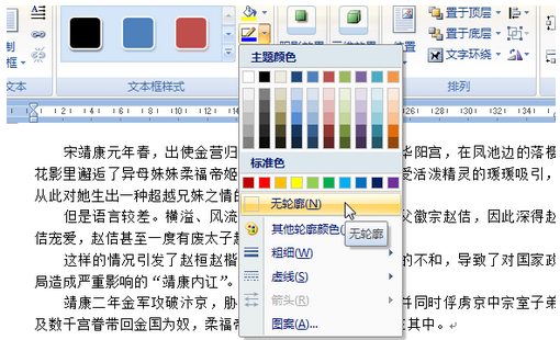 2、在文本框内输入内容,之后将文本框的边框设置为“无”。