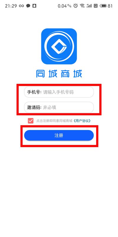 注册同城商城必须有邀请码。具体注册步骤如下: