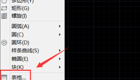 3、点击绘图菜单,在其子级菜单里找到表格选项,如图所示: