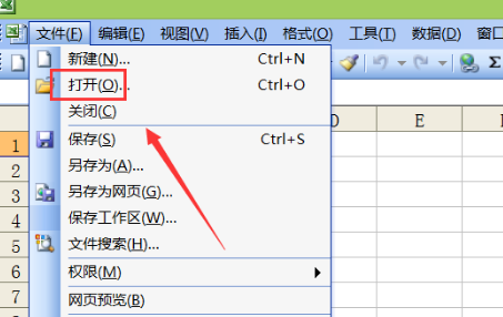 8、然后打开excel这款软件,在该界面内找到文件菜单里的打开选项,如图所示: