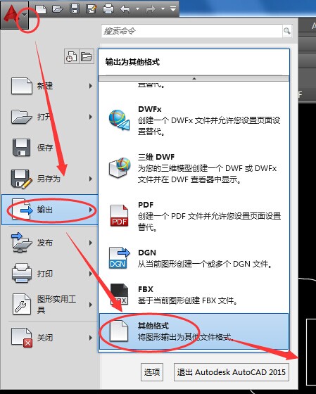 2、选择输出--其它格式文件,文件类型选择图元文件vmf,确定,选择对象即可,此格式文件,为白色背景,可插入到office