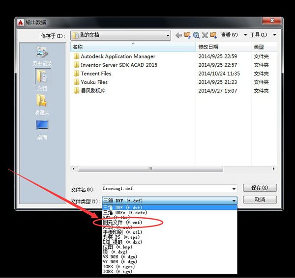 弹出对话框选择文件类型------图元文件(*.wmf)--------保存
