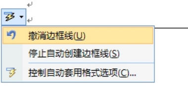 2、然后选择后会删除此横线,然后还可以选择“停止自动创建边框线”,这样就不会在产生这种删除不掉的横线。或者请你直接Ctrl+Z恢复上步操作即可。