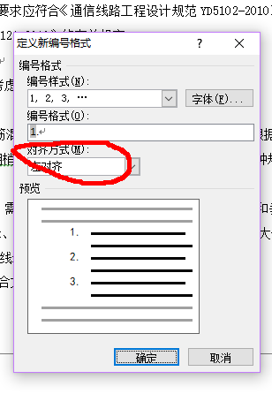 3、出现定义新编号格式的设计框后,可以根据需要,选择编号对齐方式