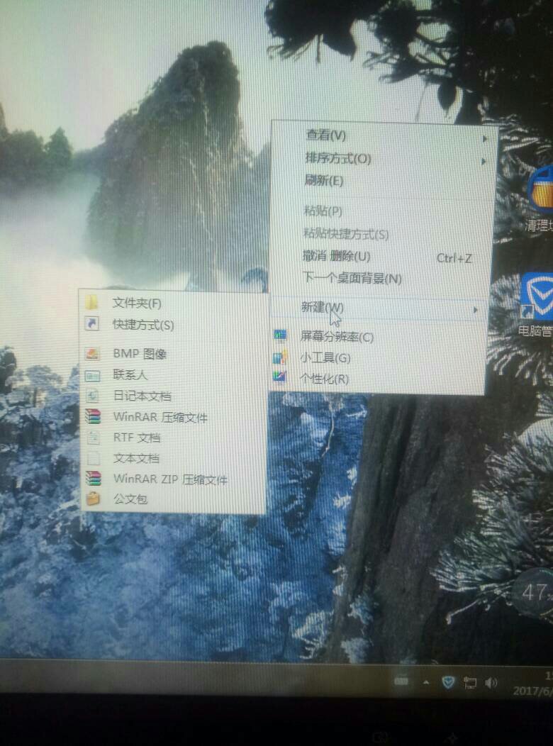 1.在桌面中选择一个空白区域,鼠标右键单击该区域调出功能页面,如下图所示。