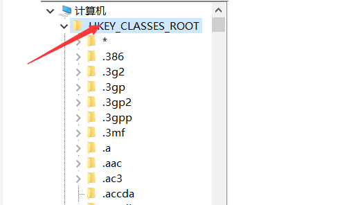 4、在计算机里找到“HKEY_CLASSES_ROOT"选项并单击左侧的小箭头。