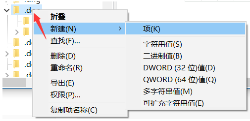 2.4在“.doc”选项卡下“新建项”并命名为Word.Document.8,
