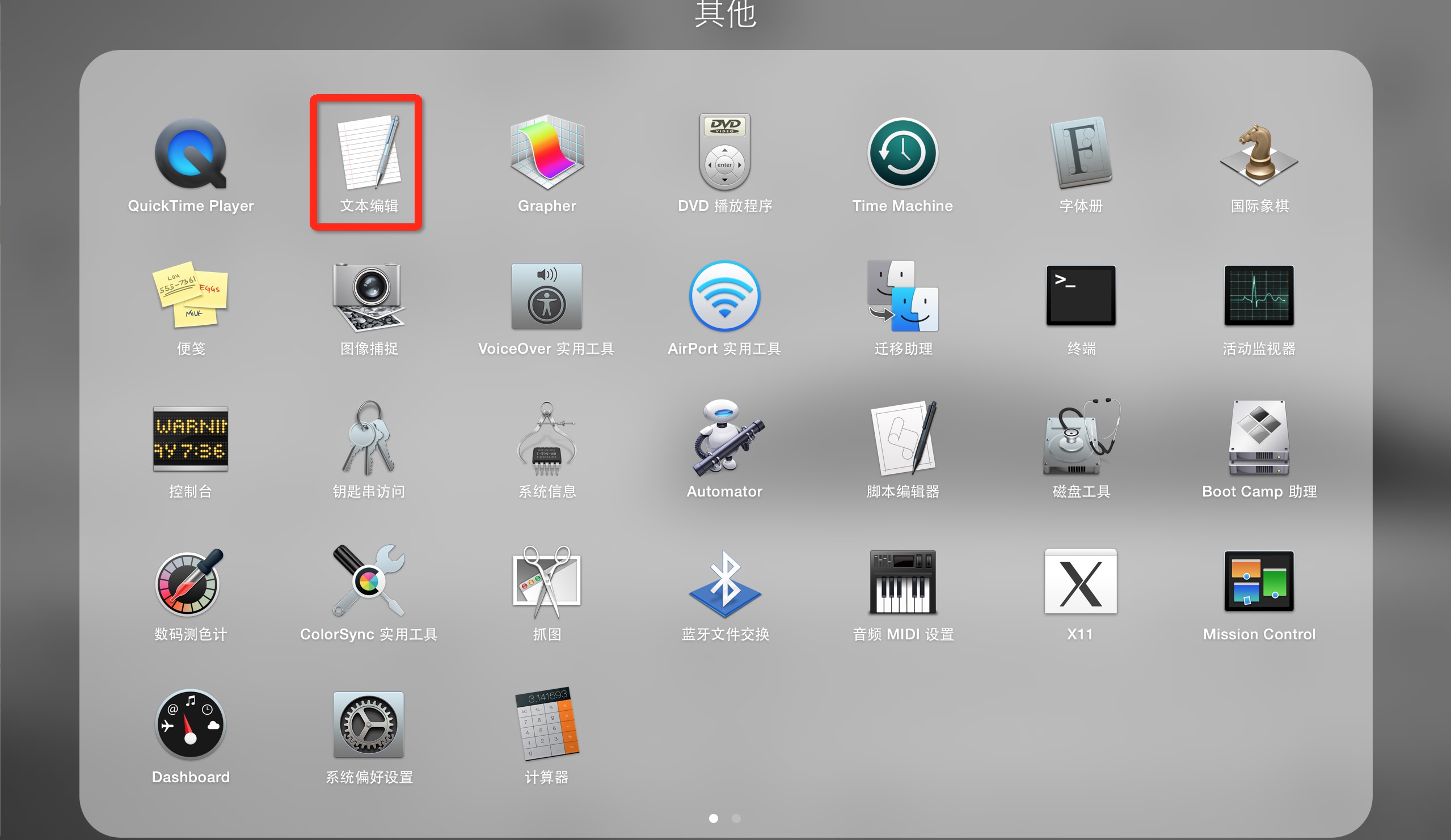 在Mac系统下,点击Launchpad-其他-文本编辑。