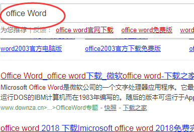 1、首先在电脑中安装office Word文档,在浏览器中搜索office Word。