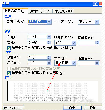 5、点击行距选项以后,在弹出的对话框中选择“行距”里的“固定值”,并设置值的参数;