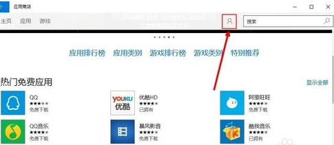 2,在应用商店中下载安装应用需要登录自己的Microsoft账号,可以点击这里的小人图标,登陆自己的账号。