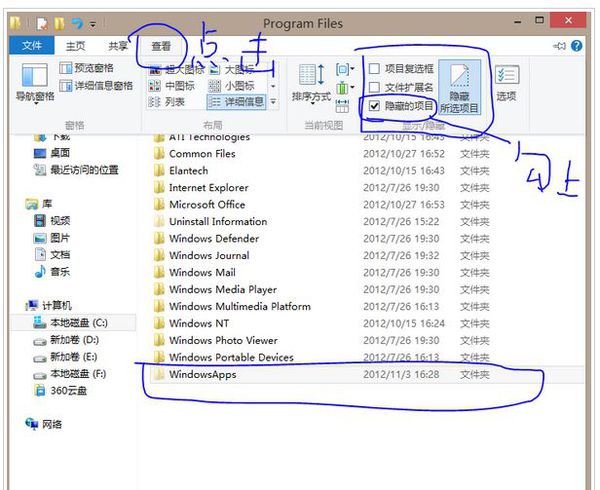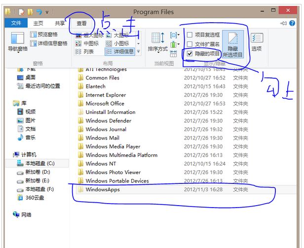 win8的应用商店软件安装目录在系统安装盘/program files/windowsapps(此文件夹时隐藏的,需关闭隐藏查看)里面,(C:Program FilesWindowsApps 这里),