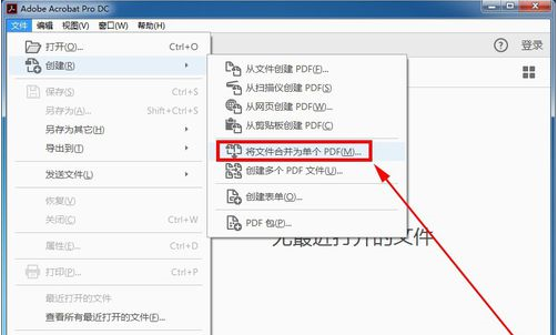 3、进入到创建文件的操作页面以后,然后在接下来的操作页面中需要选择【将文件合并为单个PDF】。