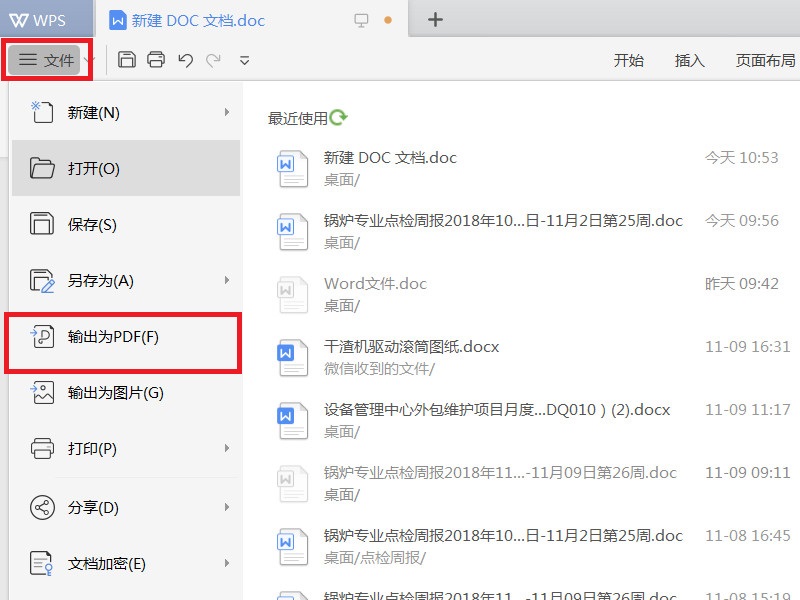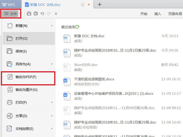 4、文件导入完毕之后,点击页面左上角“文件-输出为PDF”菜单项;