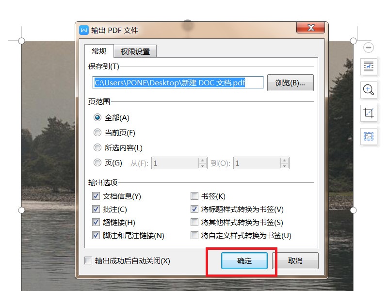 5、在弹出的页面中,点击“确定”按钮,即可完成PDF文件的创建;