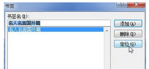 第2步,打开“书签”对话框,在书签列表中选中合适的书签,并单击“定位”按钮。
