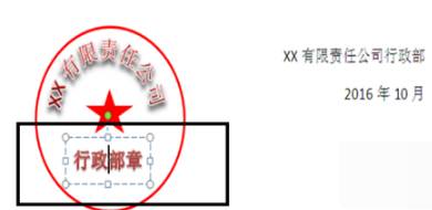 8、插入艺术字,选择和之前一样的字体,输入“行政部章”,对字体大小,文字样式进行调整,将其放在五角星的正下方。