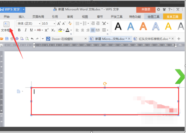 按住鼠标左键,拖拽出一本文本框,并输入您的红头文字