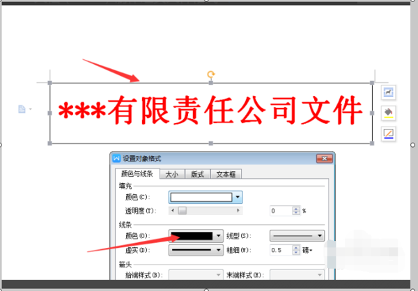 4.设置好文字格式之后,双击文本框,在设置对象格式里面选择线条,将“颜色”设置为“无线条颜色”。