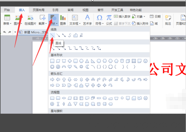 点击"插入"→“形状”→“直线”,之后的鼠标会变成“+”。