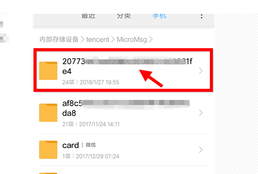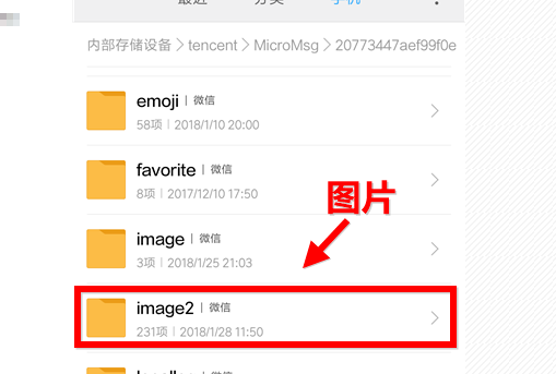 文件夹在:Tencent/MicroMsg/
