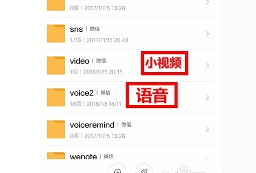 6、如下图所示的video存放的是小视频,video2存放的是语音。