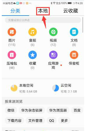 5.在文件管理系统中我们点击“本地”进入本地存储,如下图: