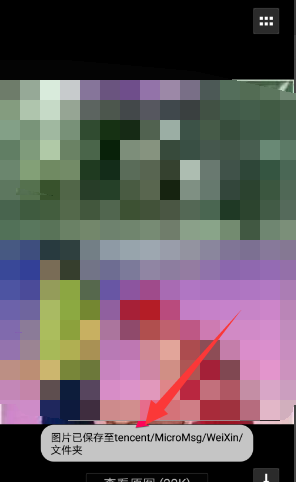 3.然后,微信会以一个小的提示框告诉我们图片保存在手机的哪个位置,只是一般这个提示框只会停顿1秒左右就会一闪而逝,所以大家一般会察觉不到,如下图:
