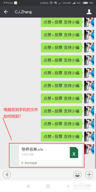 1、首先, 我们在电脑上发送文件到手机的微信上,或者有朋友发给你。