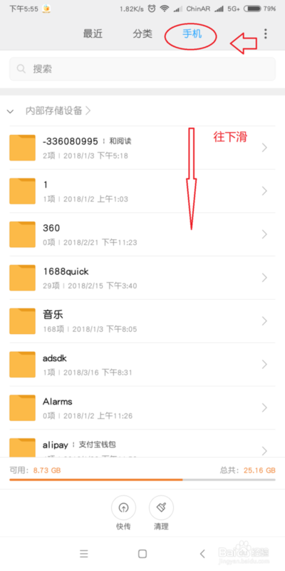 1首先打开手机内的文件管理,进入文件夹选项,选择手机或者sd卡(不同手机选择不一样)