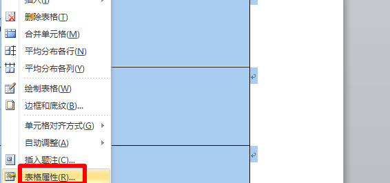 1、首先我们打开需要编辑的word文档,右键表格打开“表格属性”。