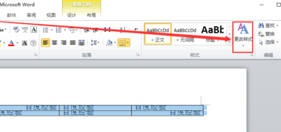 2、然后我们点击打开开始菜单栏中的“更改样式”下方的倒三角形。