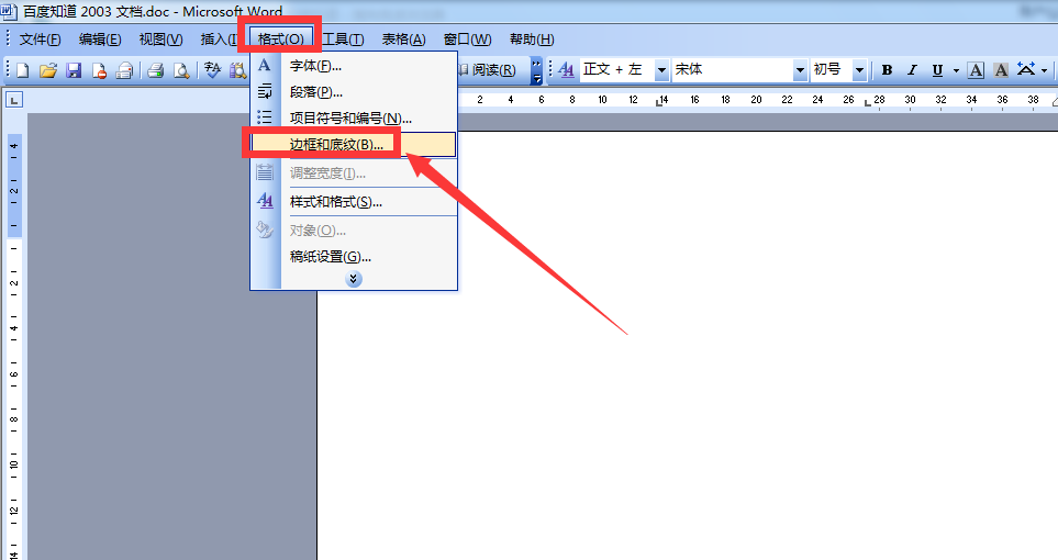 打开word文档,点击“格式”,选择“边框和底纹”;
