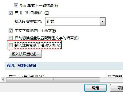 2)word2007:word左上角office菜单-word选项-高级-不要勾选‘输入法控制处于活动状态’→确定。关闭word,重新打开。