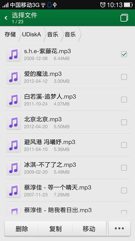 3、打开N1的文件管理,切换到存储TAB页,可以看到下面出现了“UDiskA”的盘符,此即为连接的外接U盘盘符,点击即可打开对U盘里的文件进行读写/复制/删除等操作;