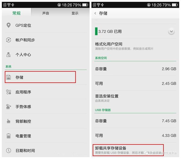 5、当使用完毕OTG外接存储设备后,卸载N1 OTG外接存储设备正确的方法如下(目前只有公测版有这个功能)。