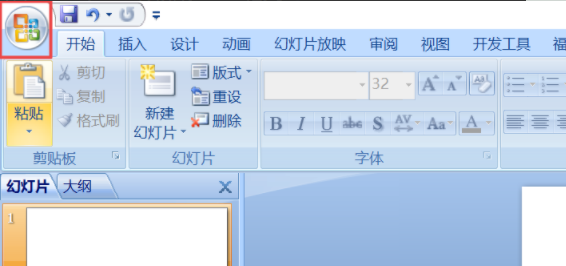 1、首先我们打开需要编辑的需要转换的PPT幻灯片,点击左上角的office按钮。