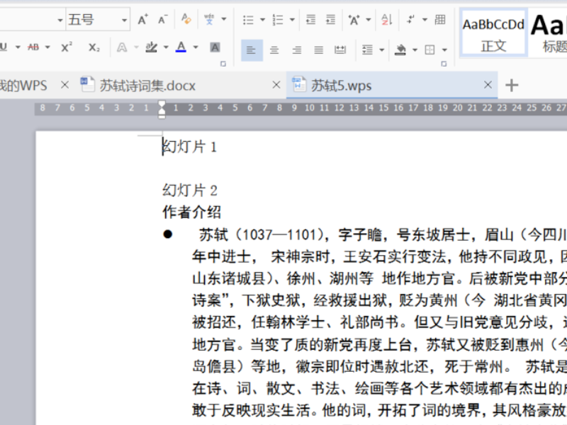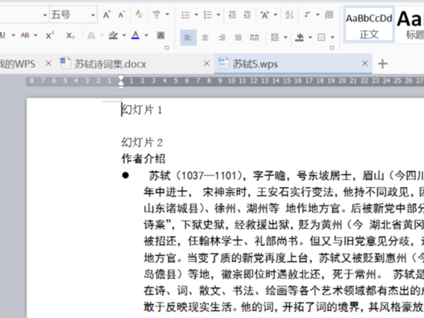 文稿转换好了以后,首先是进行字体、段落设置,然后点击相应按钮,拆分成多张幻灯片,剩下的修饰(字体、段落、项目符号与编号、背景等)。